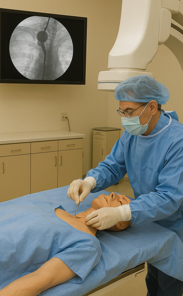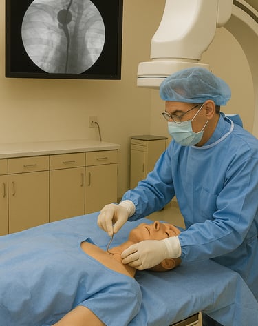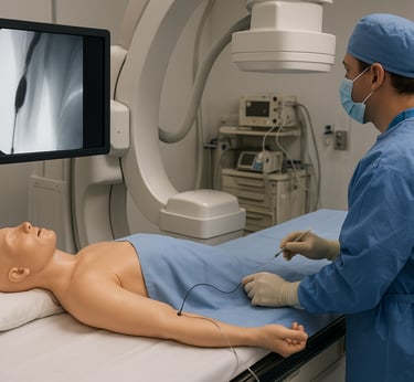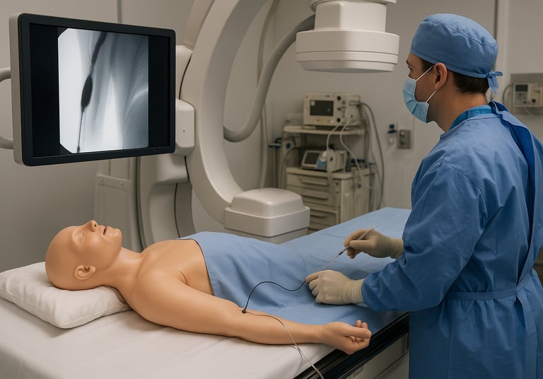 Maniquíes radiopacos que ofrecen una simulación realista en procedimientos de angiografía, permitiendo el estudio detallado de estenosis vasculares y la práctica de angioplastia terapéutica.
